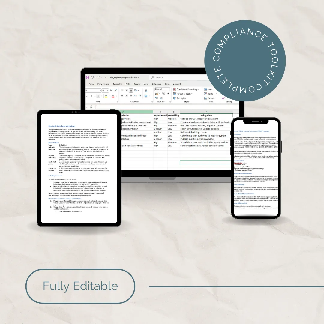 If AI is already touching recruiting, performance, monitoring or terminations and you can’t produce evidence on demand, you’re exposed. This toolkit gives you plug-and-play documentation to pass the sniff test — fast.